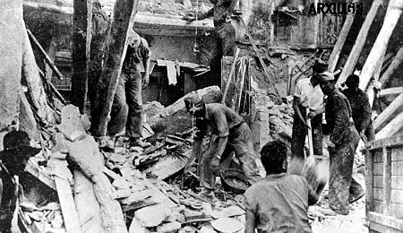 (Dos fotos siguientes: Resteo de Can Torrejón, una de las casas del carrer de Josep Anselm Clavé, muy afectada por el bombardeo)
