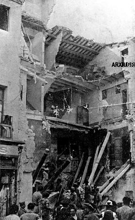 Efectes del bombardeig al carrer de Corró y Plaça Maluquer cantonada amb el carrer Sant Roc.