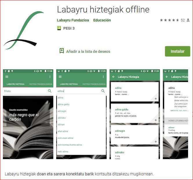 ESTA APP SE AÑADE A LA PÁGINA DE LA LISTA DE ENLACES DE APPs SOBRE EL EUSKERA A LA QUE SE PUEDE ACCEDER DESDE ESTE ENLACE