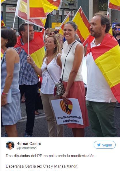 no) y que le habían pitado, le habían vilipendiado diciendo que era responsable de las armas vendidas a países que apoyan al Daesh…vamos, que los demonios independentistas habían transformado la manifestación antiterrorista en algo que llamaban hispanofobia.