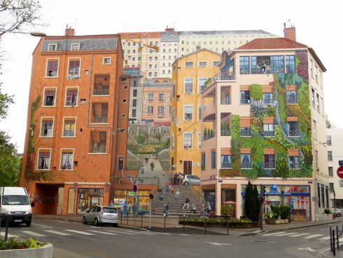 El mural en una pared más grande de Europa se ecuentra en Lyon, Francia. Fue realizado por el colectivo CitéCréation y su título es «Mur des canuts, («Wall of the Silk Weavers», «Muro de los tejedores de seda»). Aparte de ser un inmenso muro increible en su realización también tiene otra característica que lo hace único: evoluciona (cada varios años, se «repinta en parte, cambian los edificios a más modernos, los personajes envejecen…