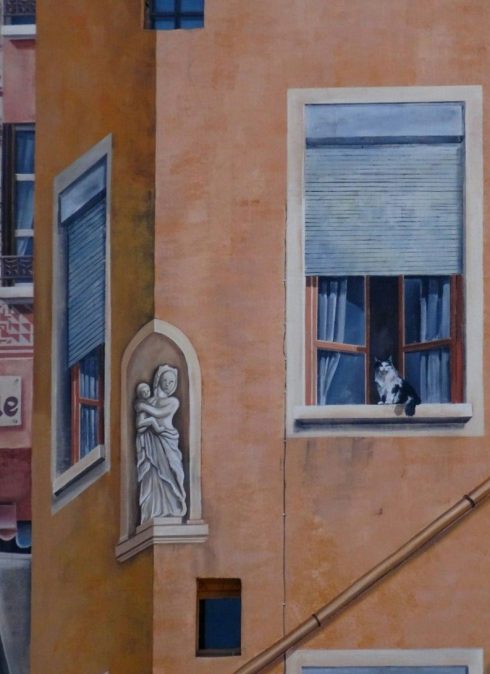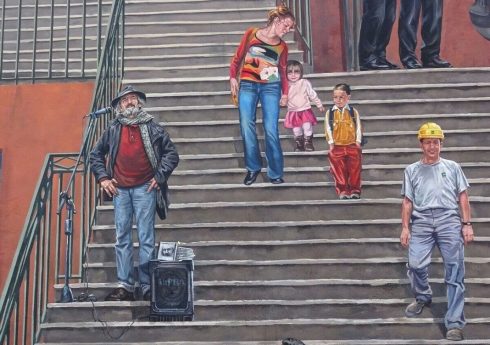 En 2013 se hace la por ahora última renovación del mural. Los personas y recreaciones son aún más hiperrealistas, como veis en las siguientes fotos, cambian muchas cosas: el edificio de la derecha tiene un manto verde por encima y otros e han renovado e iluminado, los locales comerciales han vuelto a cambiar, los personajes envejecen 15 años…