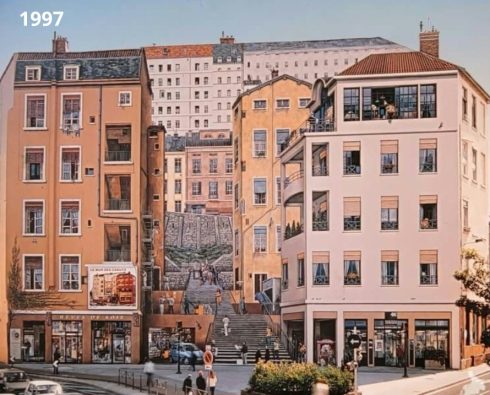 En 1997, Lyon se convirtió en la capital francesa del muralismo y los de CitéCraéation, en vista del éxito que tenía su mural, quisieron darle vida en una completa renovación del muro: cambian los edificios (el principal de la derecha es totalmente nuevo, con balconadas modernas y otros sólo se renuevan con nueva pintura más colorista y viva y otros ornamentos, surgen negocios en los bajos de ambos edificios, hay mucha más vida humana en las escaleras y en las casas… y hasta los personajes crecen o envejecen (de repente tienen 10 años más, por ejemplo, un joven que se veía en una bicicleta, ahora es un padre con una niña pequeña).