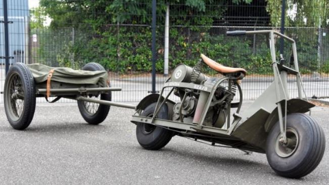 En la siguiente foto, un Cushman Model 53 Airbone de Infantería con remolque,año1944