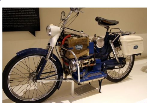 Así, en 1967, el propio Karl Kordesch (co-inventor de la batería alcalina), fabricó un vehículo (más moto que patinete o scooter) eléctrico híbrido de batería de combustible/batería de níquel-cadmio.