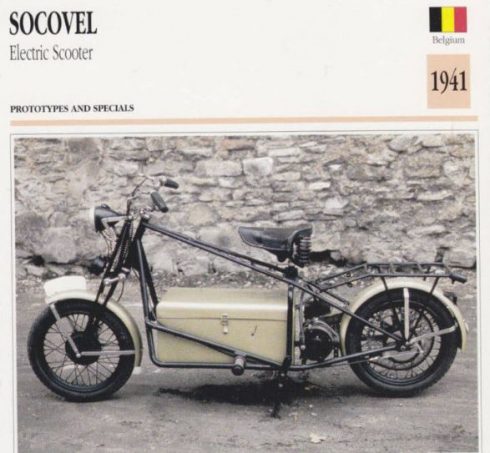 También, los patinetes fabricados en Francia por Maurice y Albert Limelette en su empresa llamada Socovel, en la que fabricaron centenares de ellos entre 1941 y 1945, la Cushman Airbone (patinetes que adoptaron las tropas estadounidenses en esa década de los 40) o el patinete con remolque de Merle Williams en California también en esos años de guerra mundial y postguerra. Estos son dos scooters eléctricos de la marca Socovel, de 1941 y 1942. Como veis son más motocicletas que patinetes o Scooter